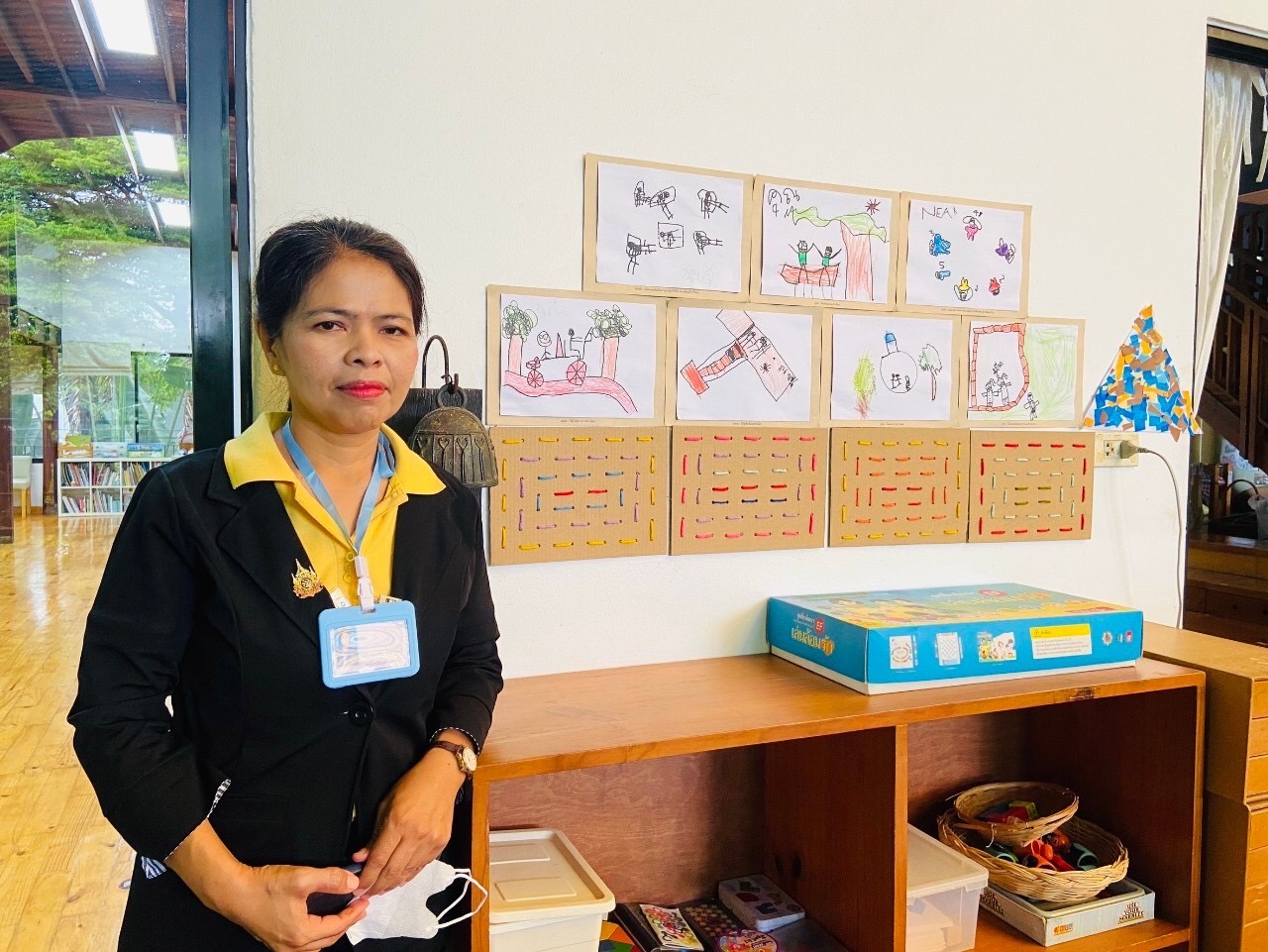 “เด็กอนุบาลเป็นช่วงสำคัญในการพัฒนากล้ามเนื้อมัดเล็ก แล้วก็การสร้างความมั่นใจในตนเอง งานของเด็กที่ทำด้วยลายมือของตัวเองอาจจะไม่สวย อาจจะโยกเยกไปบ้าง หรือระบายสีออกนอกกรอบบ้าง แต่นี่คือความภูมิใจและเป็นพัฒนาการที่นำไปประเมินเด็ก เพื่อที่จะได้นำมาพัฒนาเด็กได้ตรงจุด ก็ขอความร่วมมือให้คุณพ่อคุณแม่เน้นให้กำลังใจ นั่งดูอยู่ข้างๆ เด็ก” พร้อมกันนี้ครูรินยังกล่าวเสริมอีกว่า