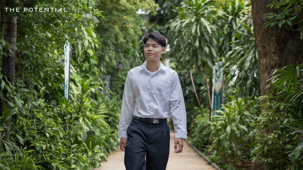 ภูมิยอมรับว่าตอนนั้นเขาไม่ได้มีภาพของตัวเองในอนาคต หรือกล้าฝันถึงสิ่งที่อยากเป็น สิ่งเดียวที่เขาคิดคือการพยายามใช้ชีวิตแต่ละวันให้ดีที่สุด ทั้งการช่วยย่าแบ่งเบาภาระ และพยายามตั้งใจเรียน กระทั่งวันหนึ่งเขาก็ได้พบกับจุดเปลี่ยนสำคัญ เมื่อทราบข่าวเรื่องทุนการศึกษาในโครงการ ‘ก้าวเพื่อน้อง’ ซึ่งริเริ่มโดย มูลนิธิก้าวคนละก้าว ร่วมกับ กองทุนเพื่อความเสมอภาคทางการศึกษา (กสศ.) เพื่อส่งเสริมและสนับสนุนให้เยาวชนที่ขาดแคลนทุนทรัพย์หรืออยู่ในภาวะด้อยโอกาส ได้มีโอกาสศึกษาต่อในระดับมัธยมศึกษาตอนปลายหรือประกาศนียบัตรวิชาชีพ (ปวช.) ได้พัฒนาศักยภาพอย่างเต็มที่โดยไม่ต้องชดใช้ทุน